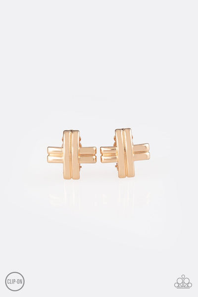 Paparazzi Earring - Couture Crossover - Gold Clip-On